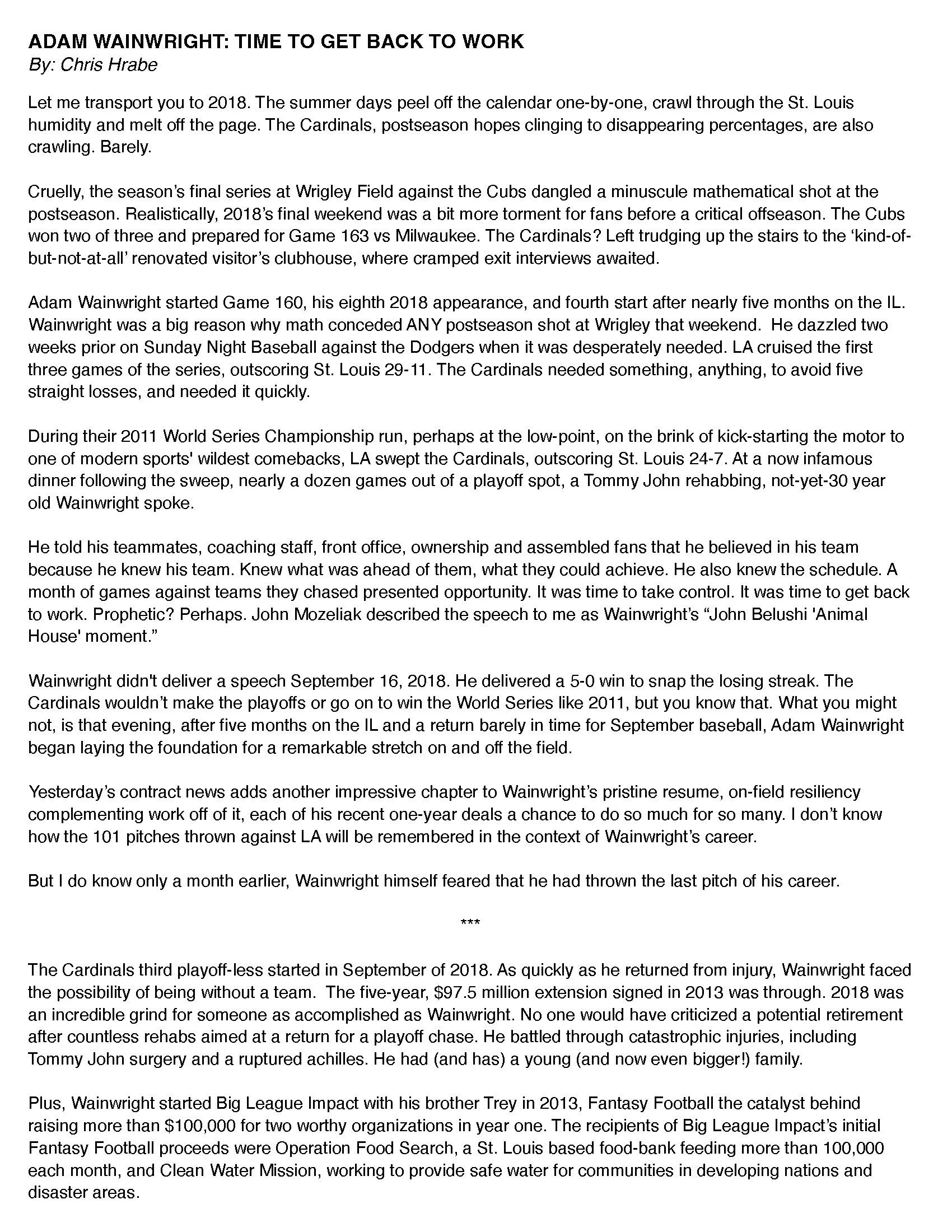 To download PDF copy of “Adam Wainwright: Time To Get Back To Work,” click story below…